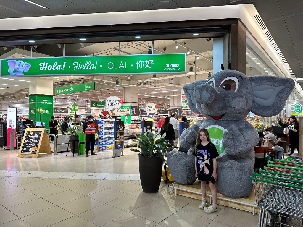 I fell in love with the cheerful, welcoming JUMBO elephant on my first trip here in March 2022. JUMBO is a South American hypermarket chain.