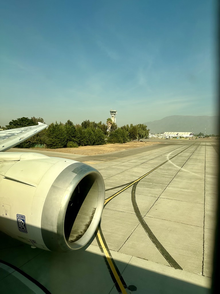 The earlier flight that were booked on until yesterday is getting ready to return to Santiago as we arrive.