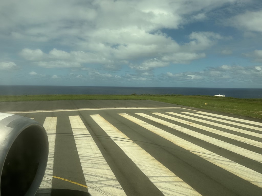 There was really nothing else to see until we were minutes away from landing. Mataveri International Aiport (IPC) is another one of those very small airports, where the plane has to turn around at the end of the runway to taxi back to the terminal. Rapa Nui itself is the most remote and isolated inhabited place on the planet. It is 3800 km from Santiago and Papeete, Tahiti, the next closest airport, is over 4200 km away, continuing west. Because of this, only one aircraft can be past the halfway point between Santiago and Mataveri at a time, as the alternate diversion airport in case of an issue at Mataveri is all the way back to Santiago. And checking the flight history for our flight, sometimes this happens! They can get all the way there and then have the airport socked in with thick fog, etc, and then passengers end up on a ten hour flight to nowhere. It’s really far away from everything out here!!