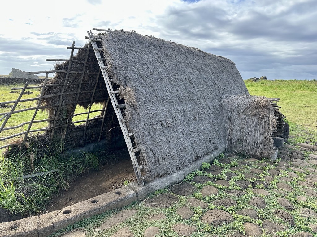 And rebuilt traditional, upside down canoe shaped houses – hare paenga.