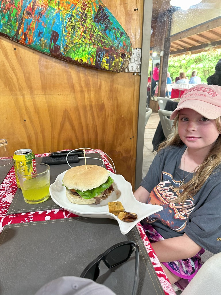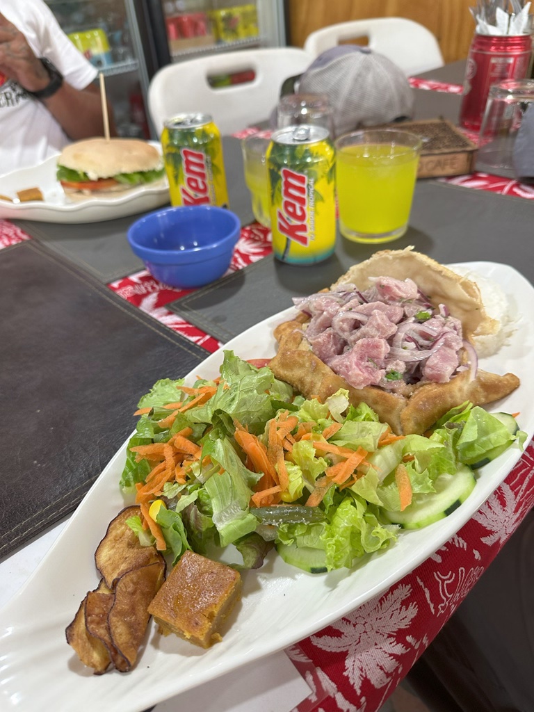 I had a ceviche platter – yum! Ellie had a huge grilled chicken sandwich, and Kem soda.