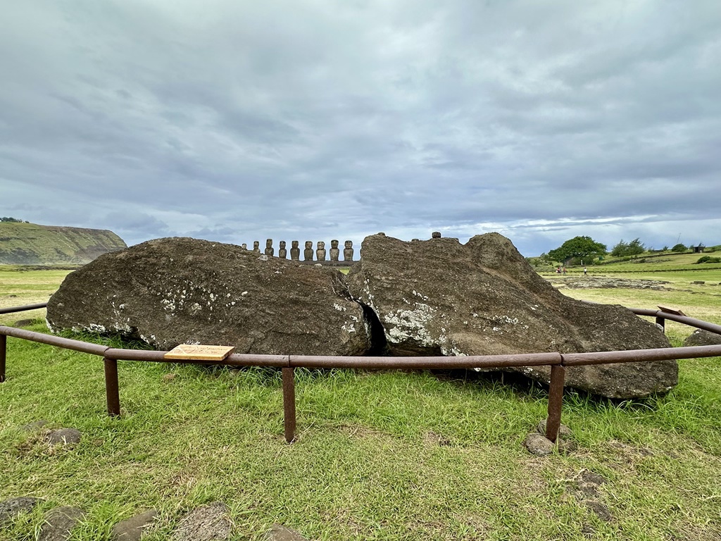This beautiful spot, one of the most important ceremonial sites on Rapa Nui, was nearly completely destroyed by a tsunami in 1960, generated by a magnitude 9.5 earthquake in Chile. The Japanese government became a partner in restoring this site to its former glory in the early 1990s.
