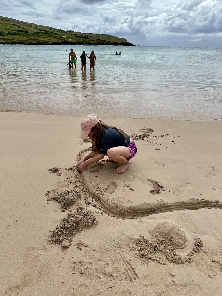 After too short of a time at Anakena, wishing we’d remembered our swimsuits to go more than knee deep in the ocean, we headed back to the hotel and took a dip in the pool.