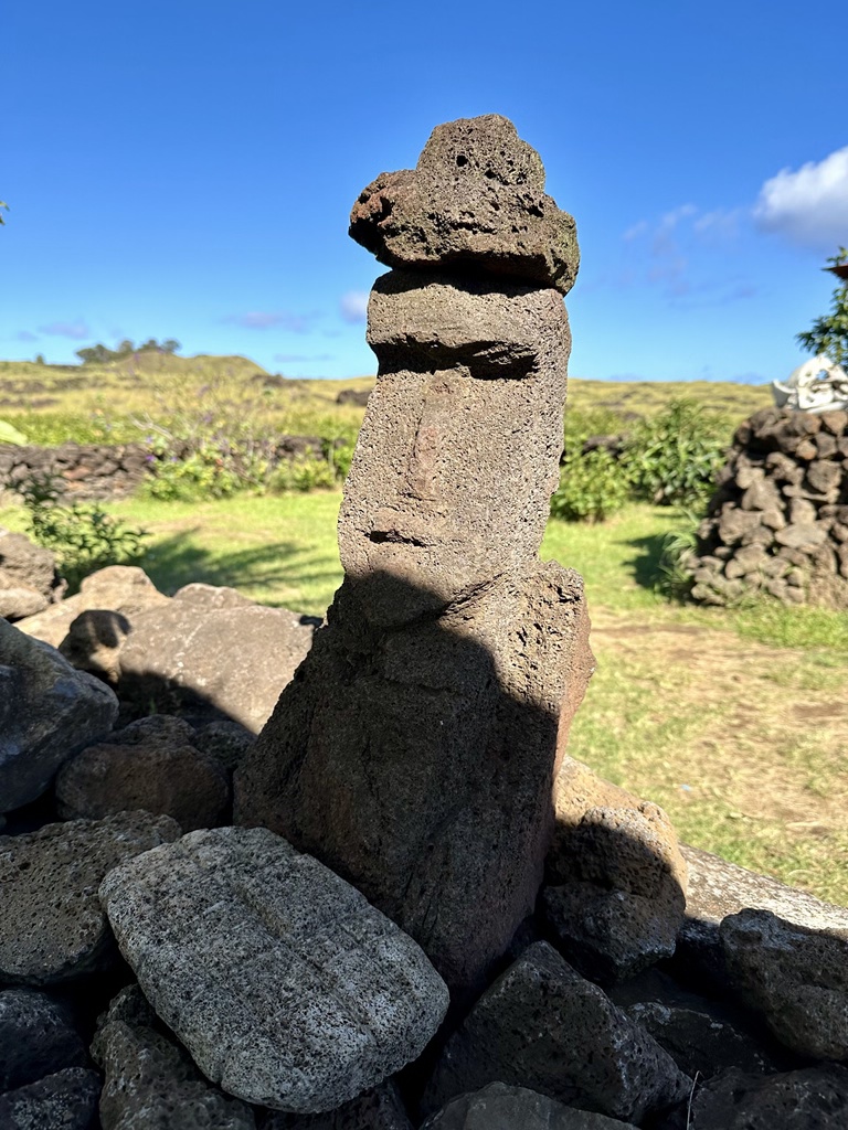 One of the moai here has eyes, the only one on the island, which are made from white coral and obsidian pupils.