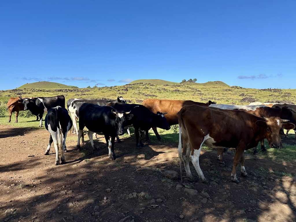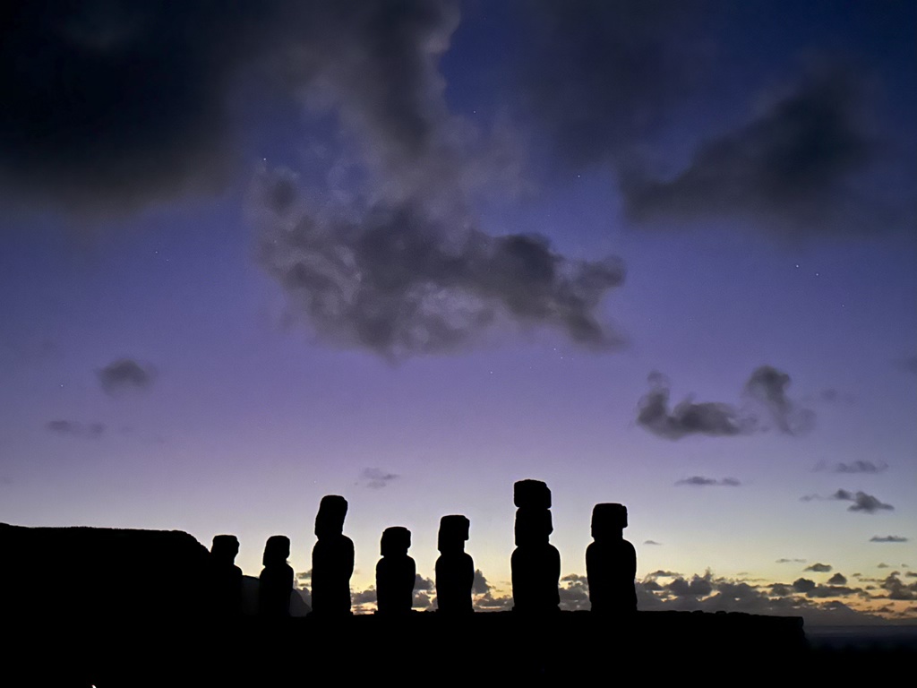 A super quiet and comfortable sleep at the Hotel Ohana (not be confused with the Hostel Ohana, which our taxi driver the first night brought us to – on the opposite side of town, a whole 4 minutes away!). Rapa Nui is not really in the correct time zone for its longitude, so sunrise and sunset are a bit later than they might be elsewhere. This picture of the stars and Milky Way was out front of the hotel at 6:15 am. Not really even that early! I chatted with another two ladies who were friends from Brazil and Chile respectively, who were heading out for sunrise at Tongariki. For us, we’re going to have a slow moving morning with late breakfast and then head out around 10:30 again with Tito to see some different areas.