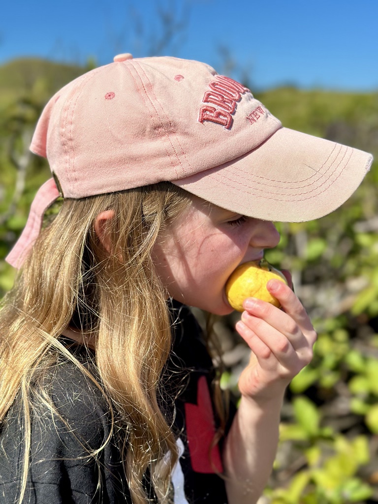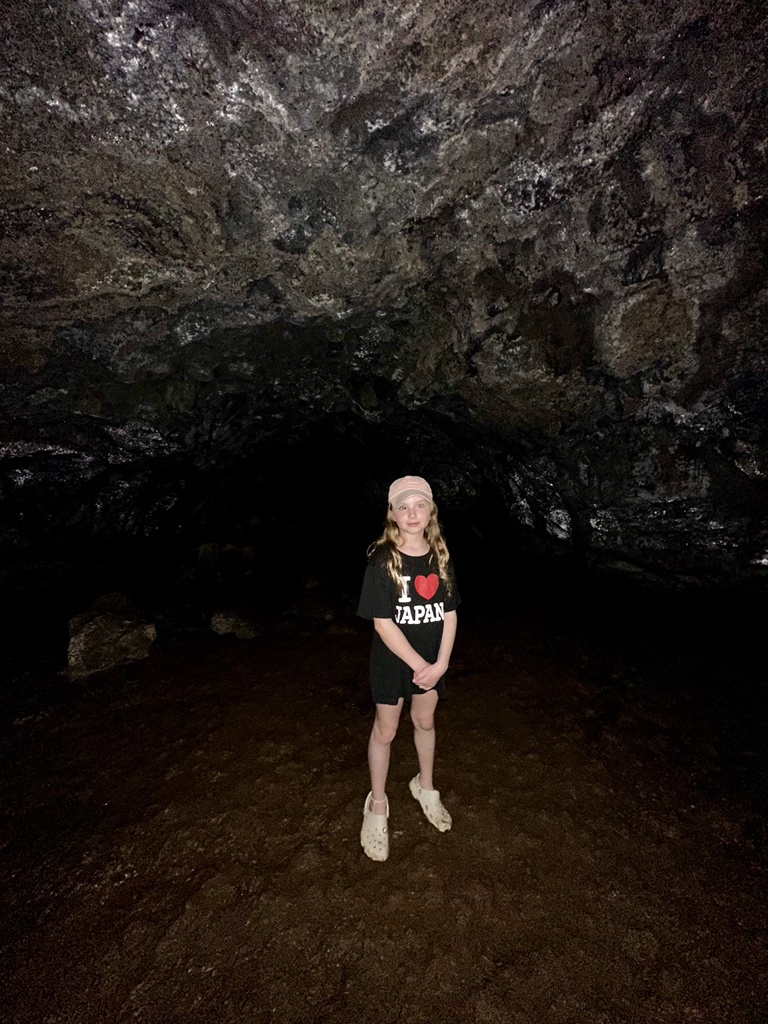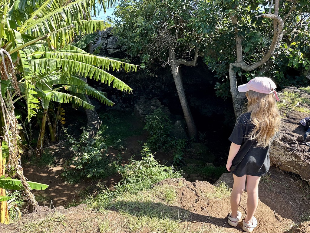 Finally, we pop out at the end of the walkable part of the tube, and there are some guava trees in the depression. Tito picked a bunch of ripe ones for us to try. Ellie didn’t like it, too many seeds!
