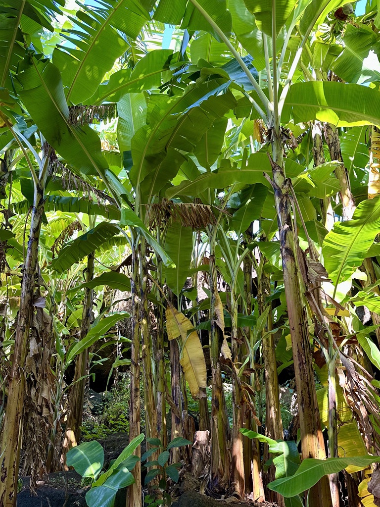 The sunken areas where the tubes collapsed to be open to the air make fantastic natural greenhouses. The banana plants were flourishing in here.