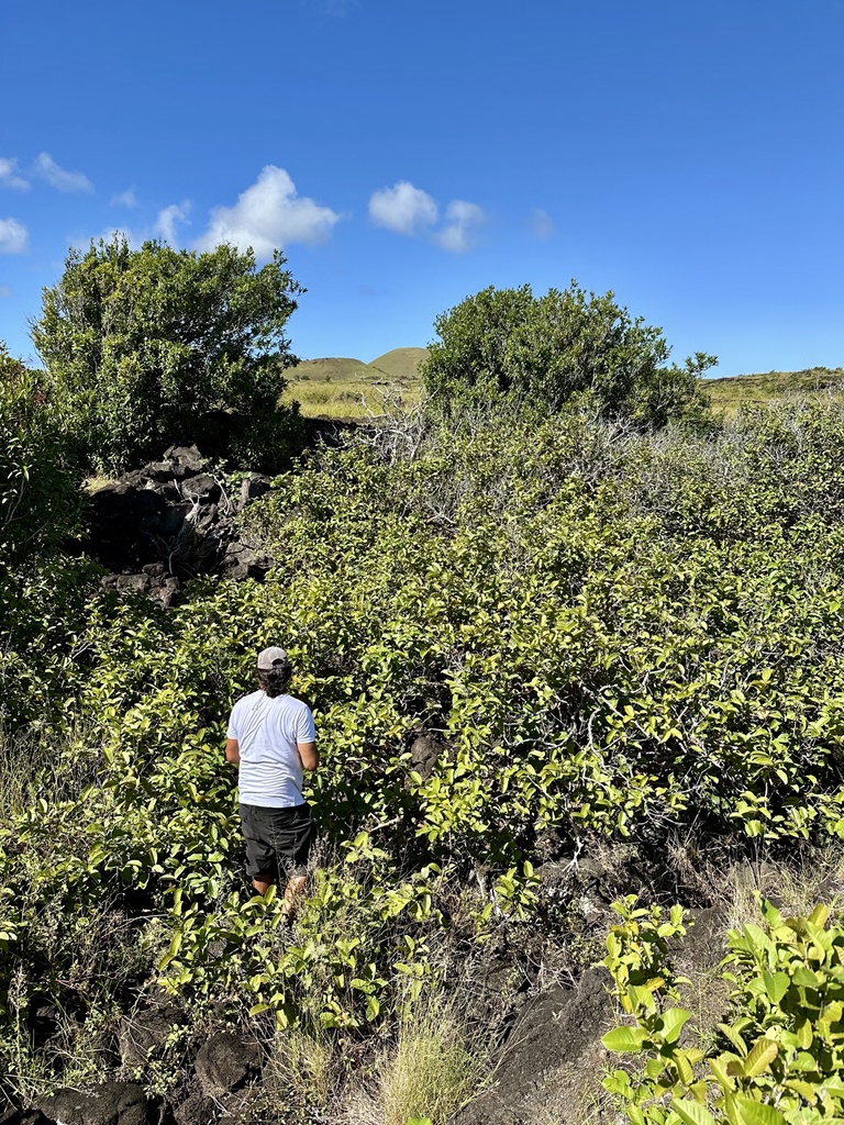 This shows how much of the island looks – gently rolling terrain with low shrubs and volcanic rock scattered everywhere.
