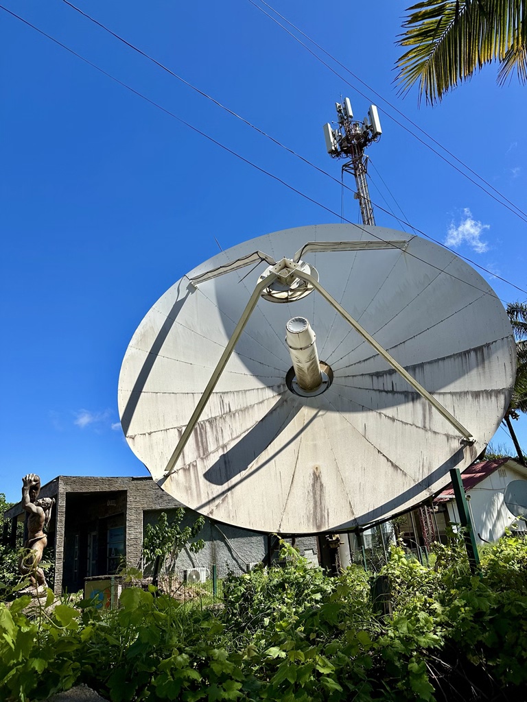 Some more pics around town, including an enormous satellite dish at the telecom company’s office. Almost everywhere we went was using Starlink for internet, so this probably isn’t receiving a lot of data these days.