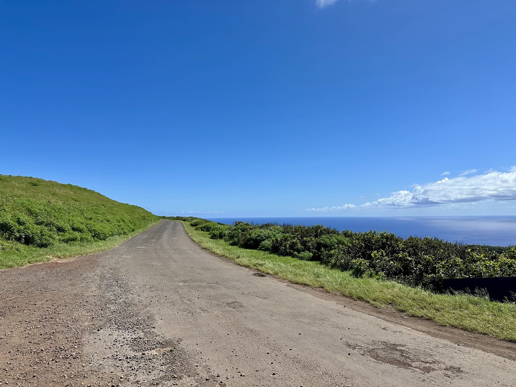 A view of the road up the mountain. To our right, French Polynesilies thousands of kilometres away.
