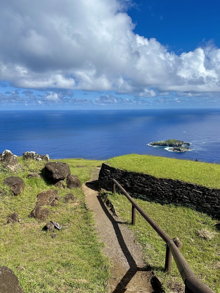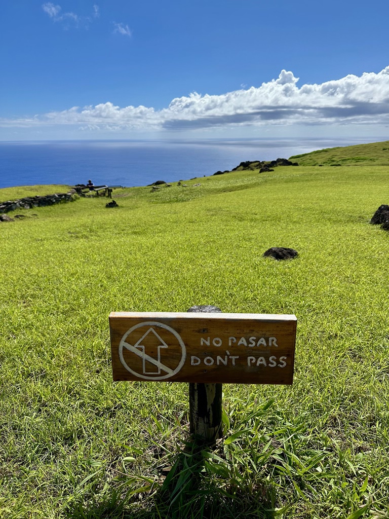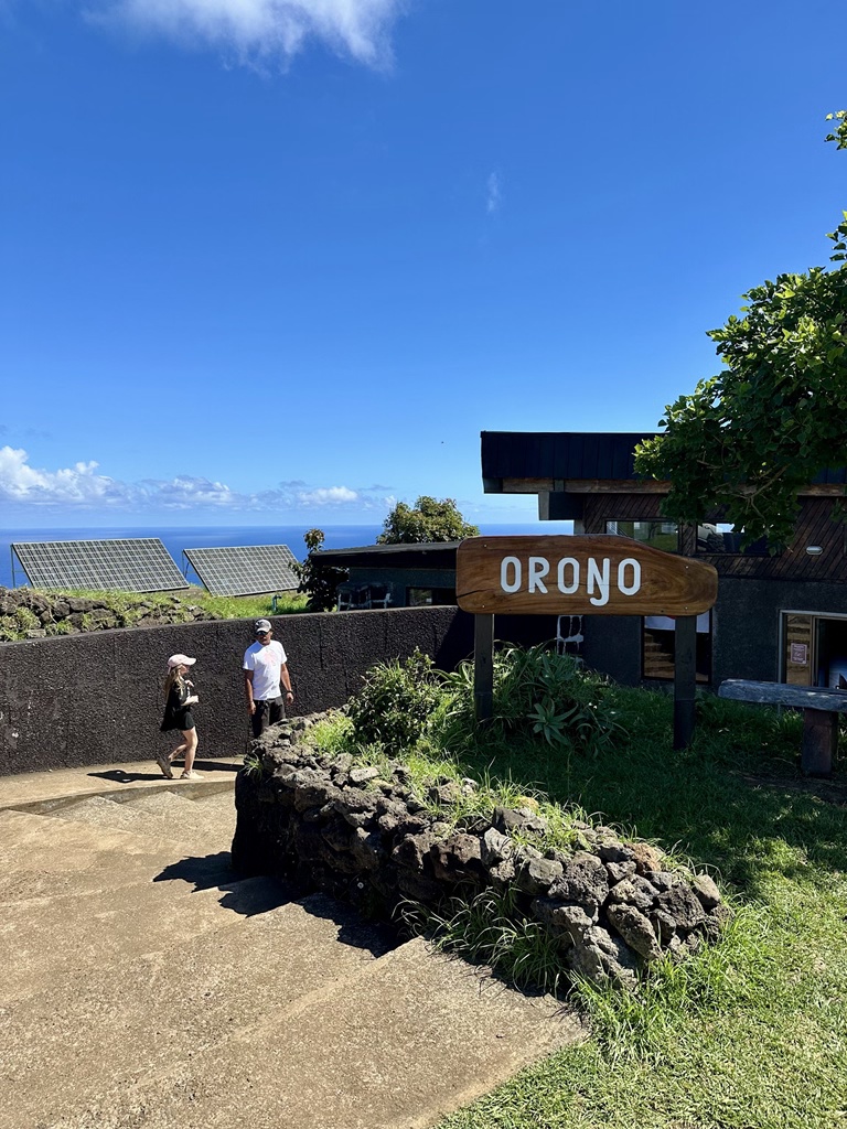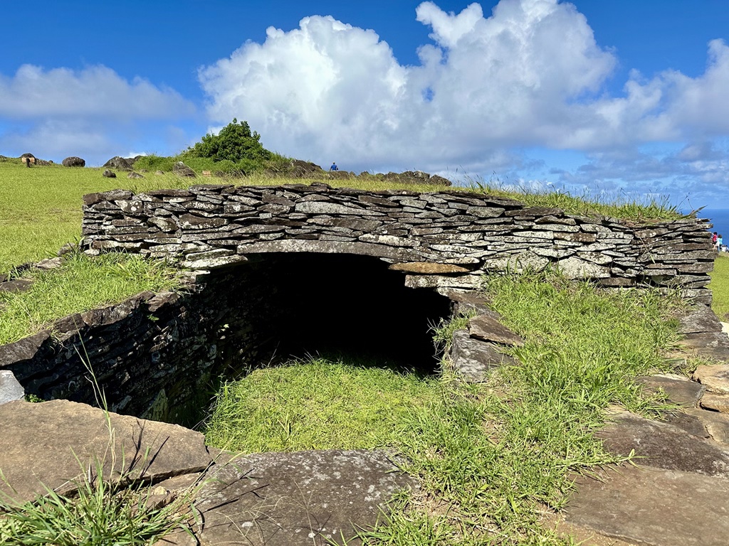 Orongo, the site at the very top of the hill, will be our last stop today. Orongo was a village and ceremonial center of Rapa Nui in the 18th and 19th centuries; while it had no permanent inhabitants, there were houses up here that were occupied for several months a year.
