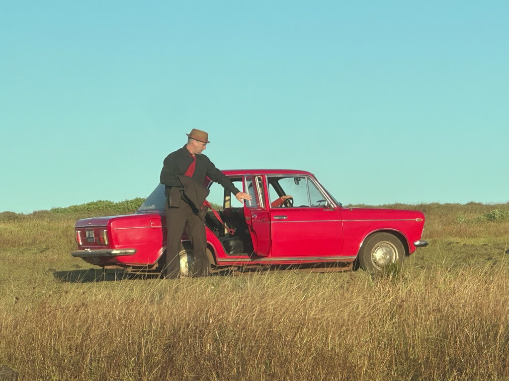 On the island, a movie called Wild Horse Nine, staged in the 60’s, is being filmed for the last few weeks. There are a few big names like John Malkovich and Steve Buscemi in the movie. We didn’t see them but Tito had seen them around recently. They were setting up for a filming session at the quarry, and we saw one of the actors arriving on site in this vintage car.
