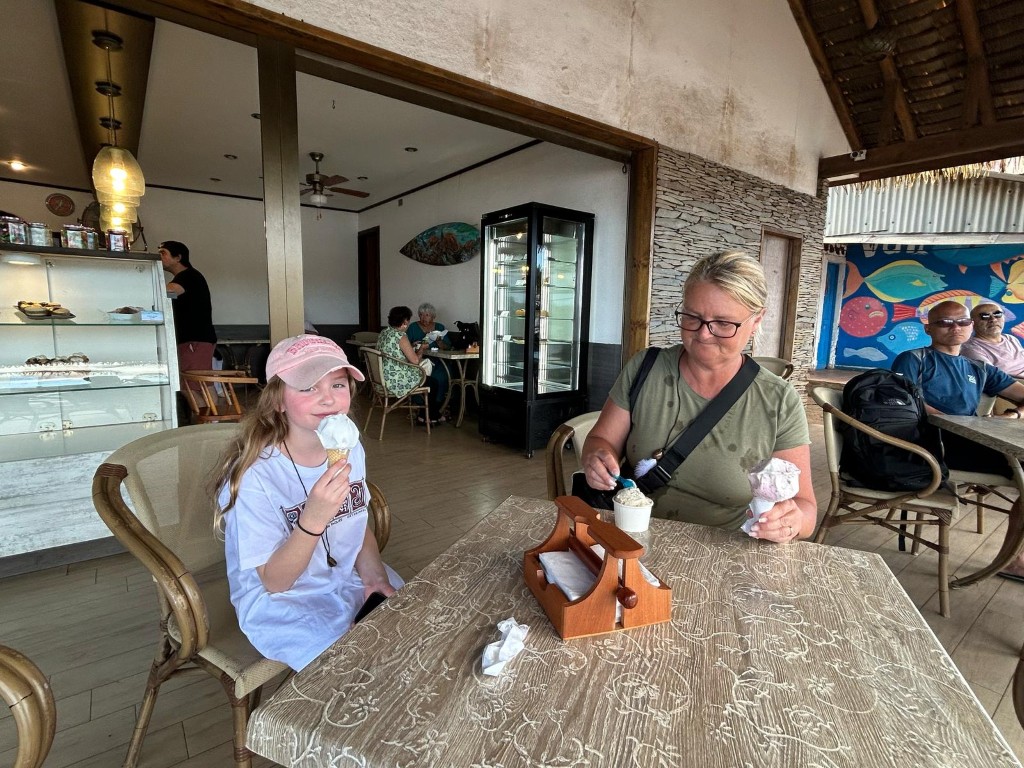 We had a few attempts to find ice cream. Tito had recommended a place right beside the harbor but unfortunately they were closed on Sundays. Then he suggested an alternative just down the road, but they weren’t open until 3. So the last place we went to was successful. It was just Nestle ice cream, not homemade like the other places, but it still did the trick to perk Ellie up on this hot afternoon.