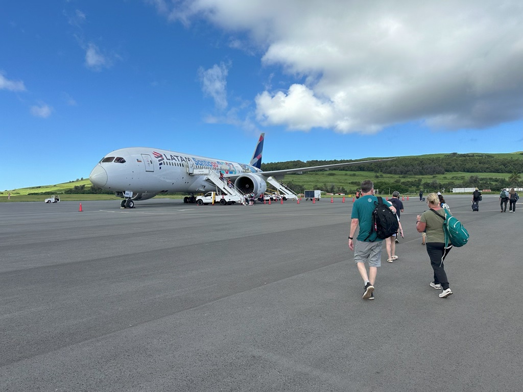I did get my video of the arriving flight and it was very cool. I also encountered a planespotter from Santiago who was at the same place with a massive dSLR camera. After that, I walked back to the airport to meet Juan with our luggage, and passed one of the few gas stations on the island. It looked from the signage like it used to be a Shell and was now unbranded. I don’t think I saw any chains whatsoever on Rapa Nui other than the banks.