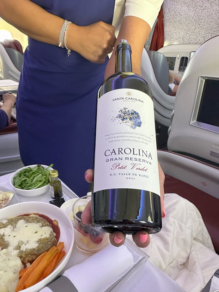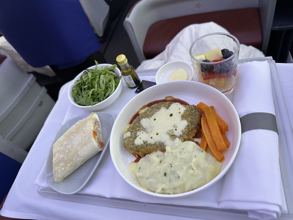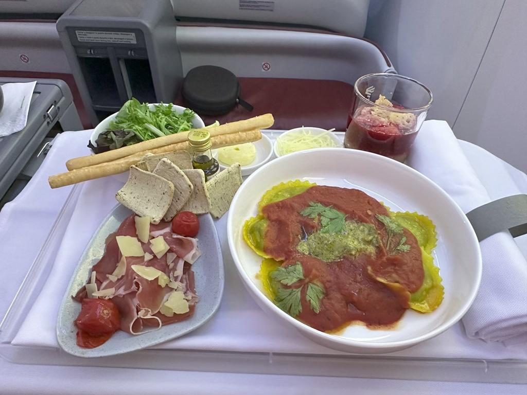 We had an uneventful flight back to Santiago. The menu was the same as the way out, so I ordered the ravioli. It was a bit dry, the beef was better.