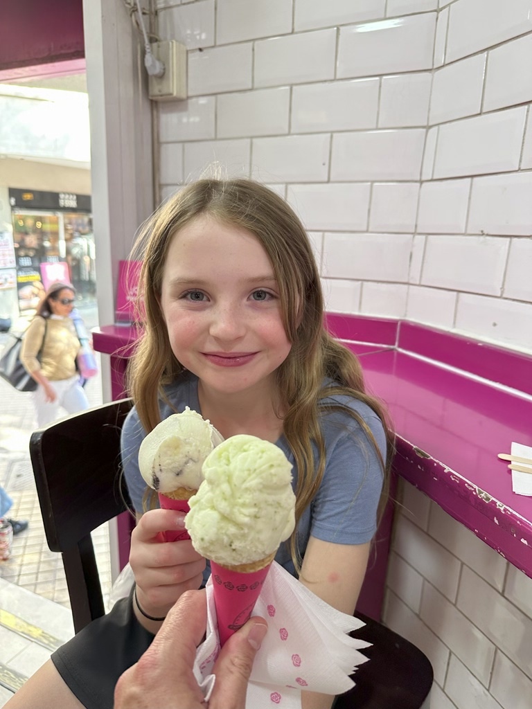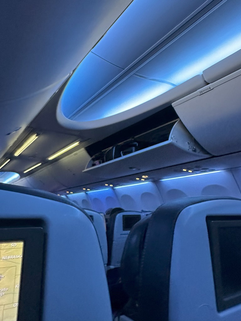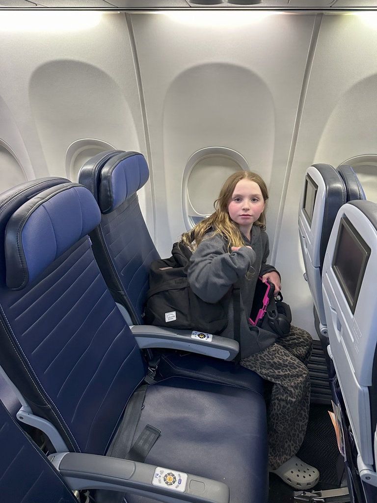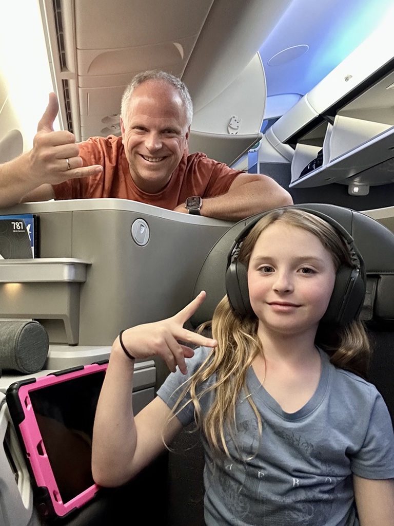 They forgot to load Ellie’s kids meal so she got the starter tray and ice cream sundae before anyone else even got a drink to make up for it. Kudos to the cabin crew for that.