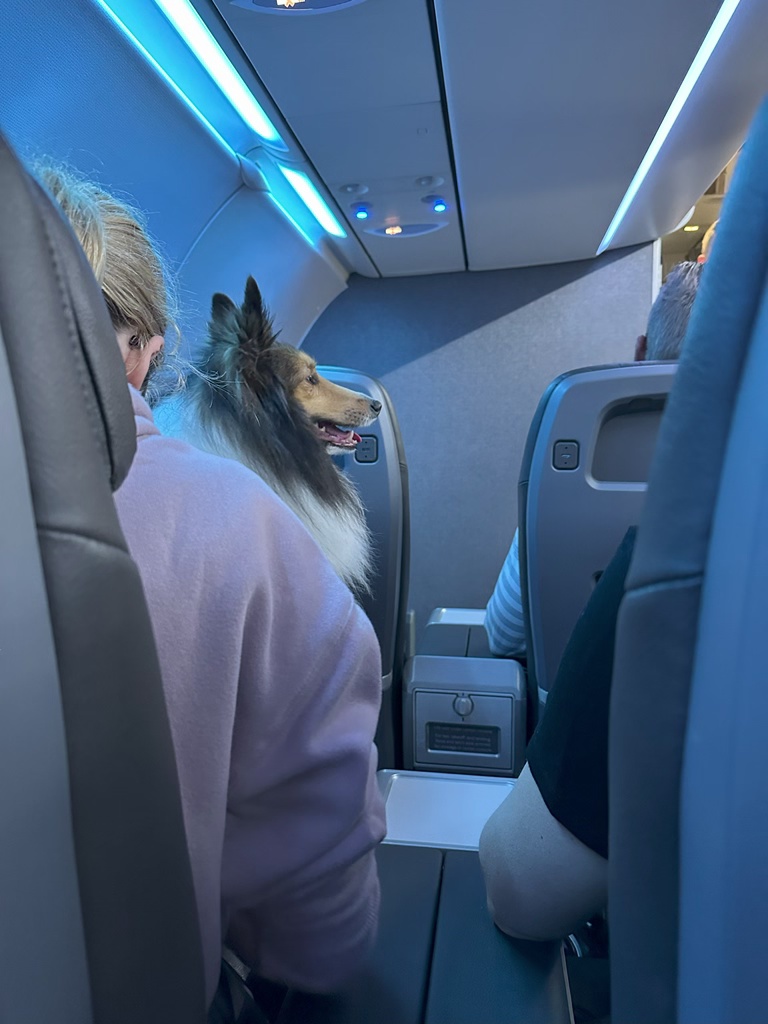 On the flight to Denver the person sitting in front of us had a “service animal”. It was very well behaved and cute.