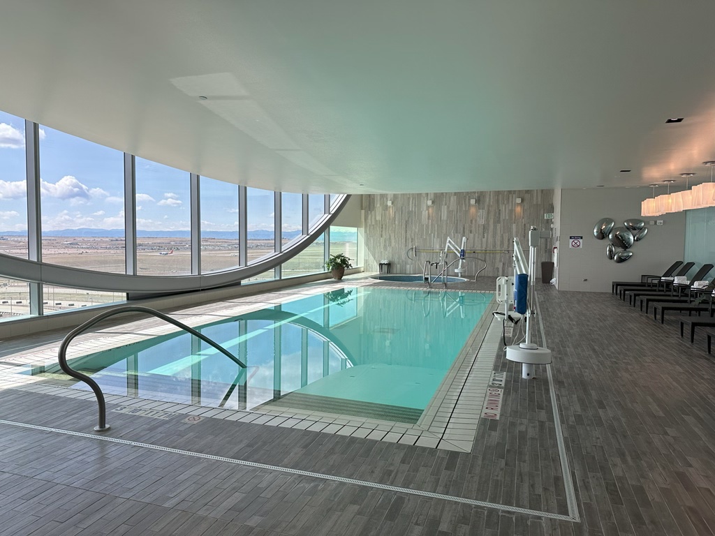 We have 8 hours to kill in sunny Denver, so I booked us a day pass to use the amenities at the Westin hotel attached to the airport. It was really nice to be able to do that rather than bumming around the airport for that long, and neither of us felt like venturing into town. Here’s the view from the pool.