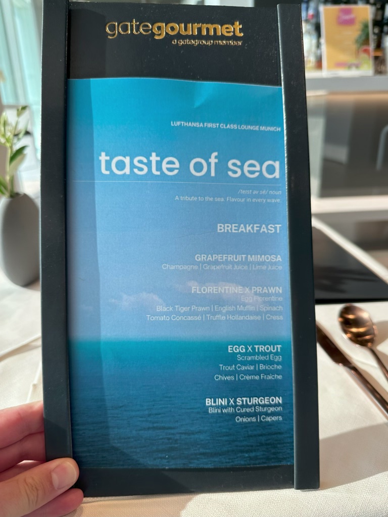After a late evening flight down to Munich and quick overnight stay by the Munich airport, I’m on the start of my next segment of this short trip. Heading to Boston today. But first, not without trying as many of the Lufthansa First Class lounges that I can squeeze in. My first stop was at the lounge in the Munich satellite terminal for a delicious breakfast.
