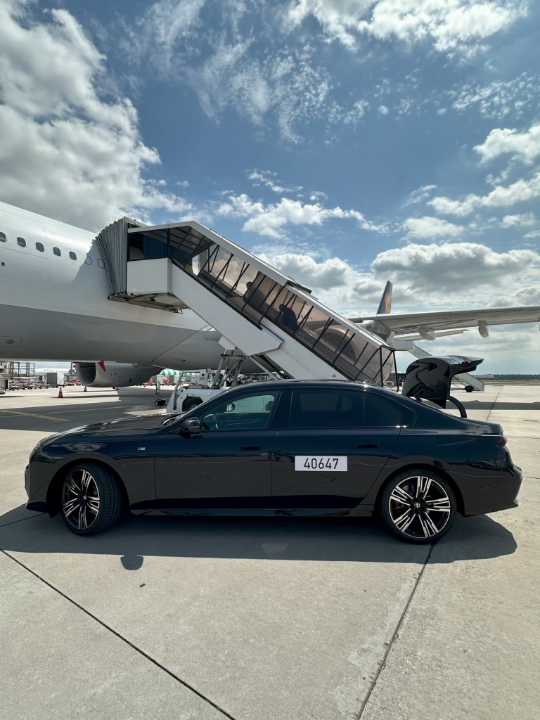 On all of my previous visits to the FCT I’ve been lucky enough to have the limo transfer service all to myself. Today I ended up sharing an all electric BMW i7 M70 with 2 other passengers – a German-American investment banking executive, and an American board member of some Germany company. Today was also by far the longest ride I’ve ever had with this service. Our aircraft was parked at the very far west end of the cargo area, which was about a 10 minute drive. Normally the drive to a US bound flight is less than a minute.