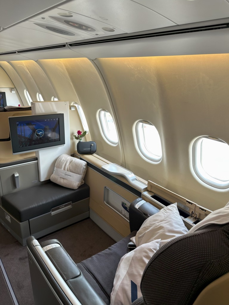 I booked this particular flight on this particular day because it was the only time that I could get a first class seat on points on Lufthansa’s A340-600, which is due to be retired permanently next winter.