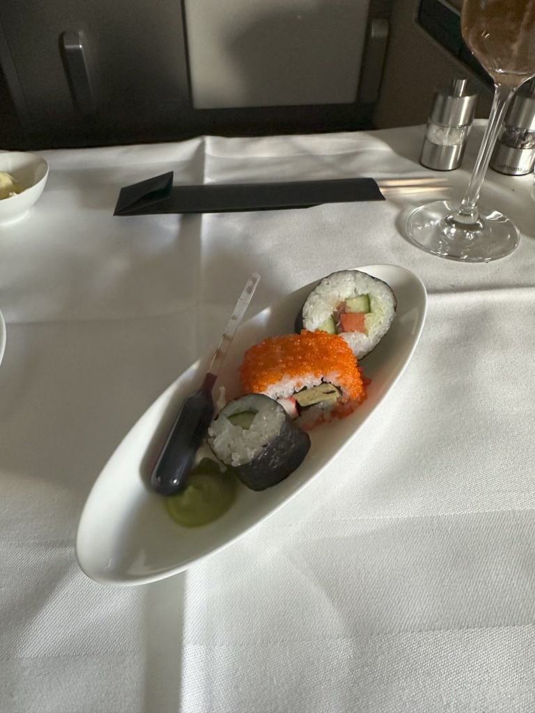 After a nap over the ocean, I had a butternut squash soup and sushi (!) before landing.
