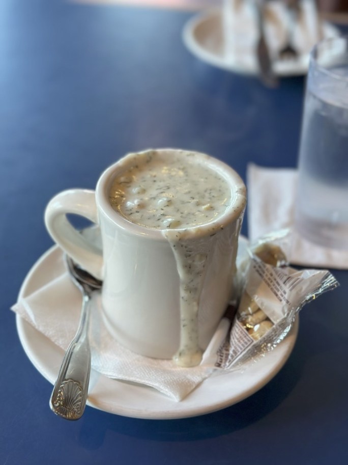 Ah, finally I get in. The walking made me a bit hungrier which was good. This was the best clam chowder I’ve ever had. Not to be confused with Shao-dair.