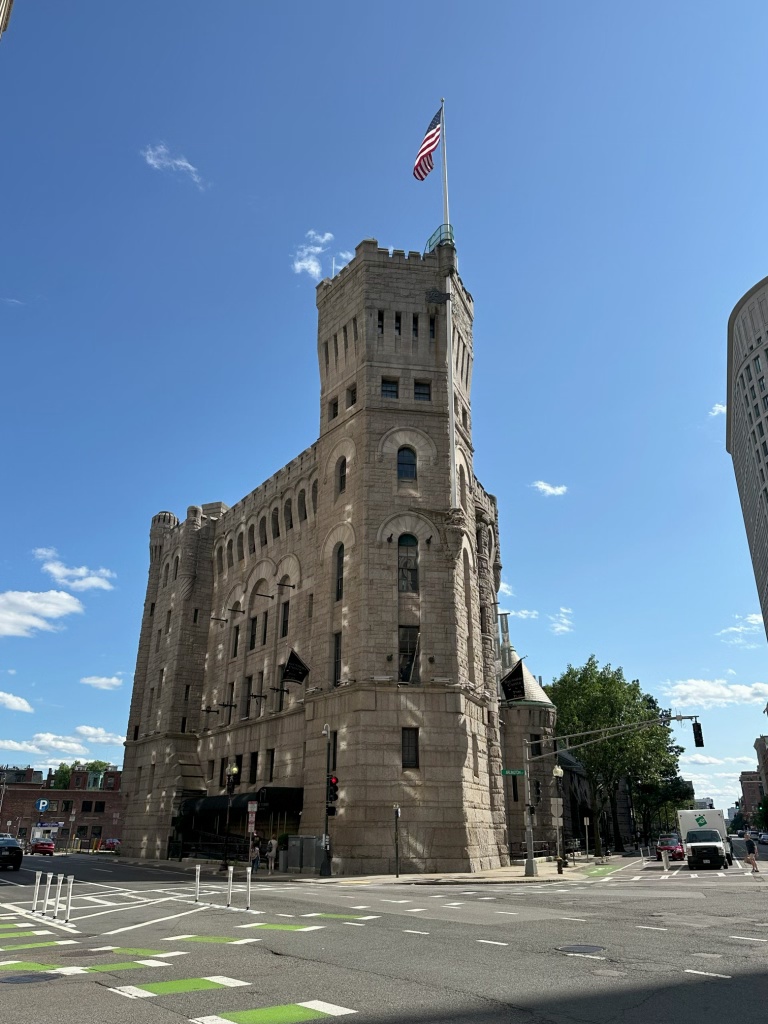 This is the Armory of the First Corps of Cadets (1897) – now an event venue called simply “The Tower”.