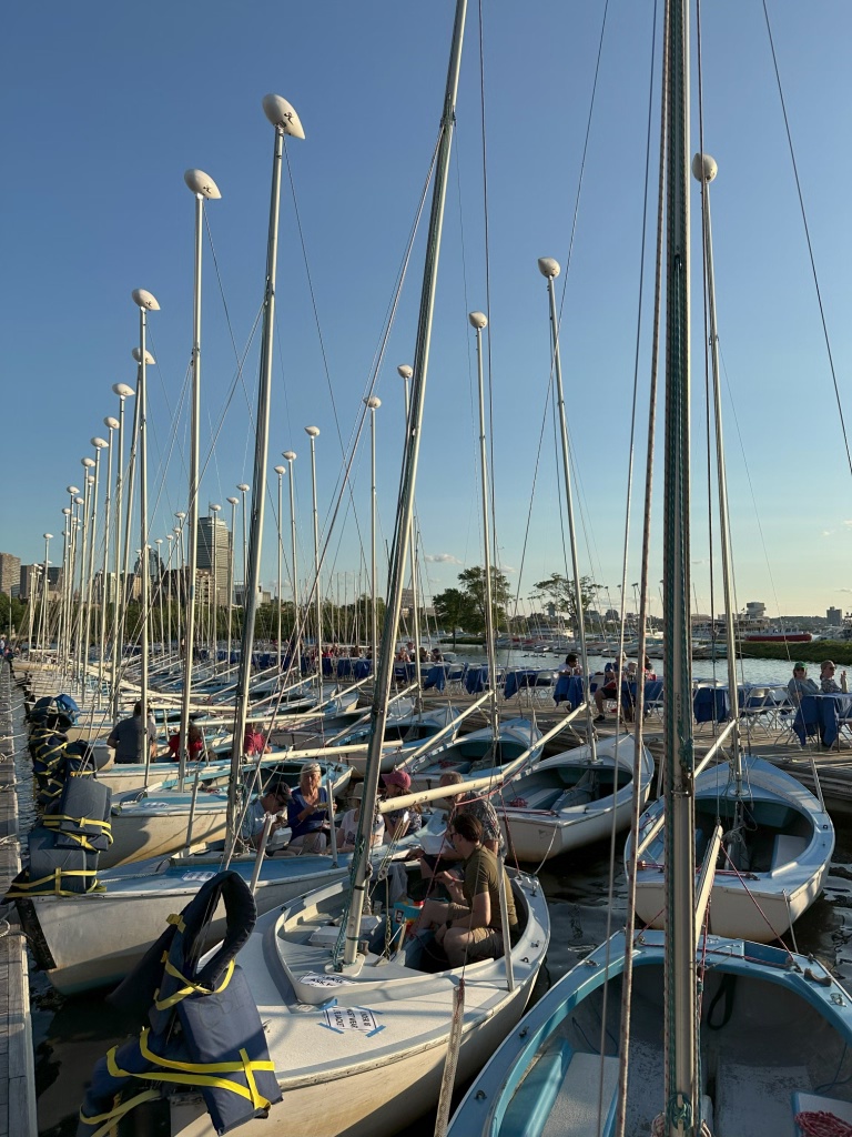 For the 4th of July fireworks show, I’ve booked a seat at the Community Boating club, which provides access to seating on their beautiful docks as a fundraiser. Just out of view (but we could hear it), was the Boston Pops concert, at which soldiers fired off real artillery during the performance of Tchaikovsky’s 1812 Overture. It was unexpected and super cool!