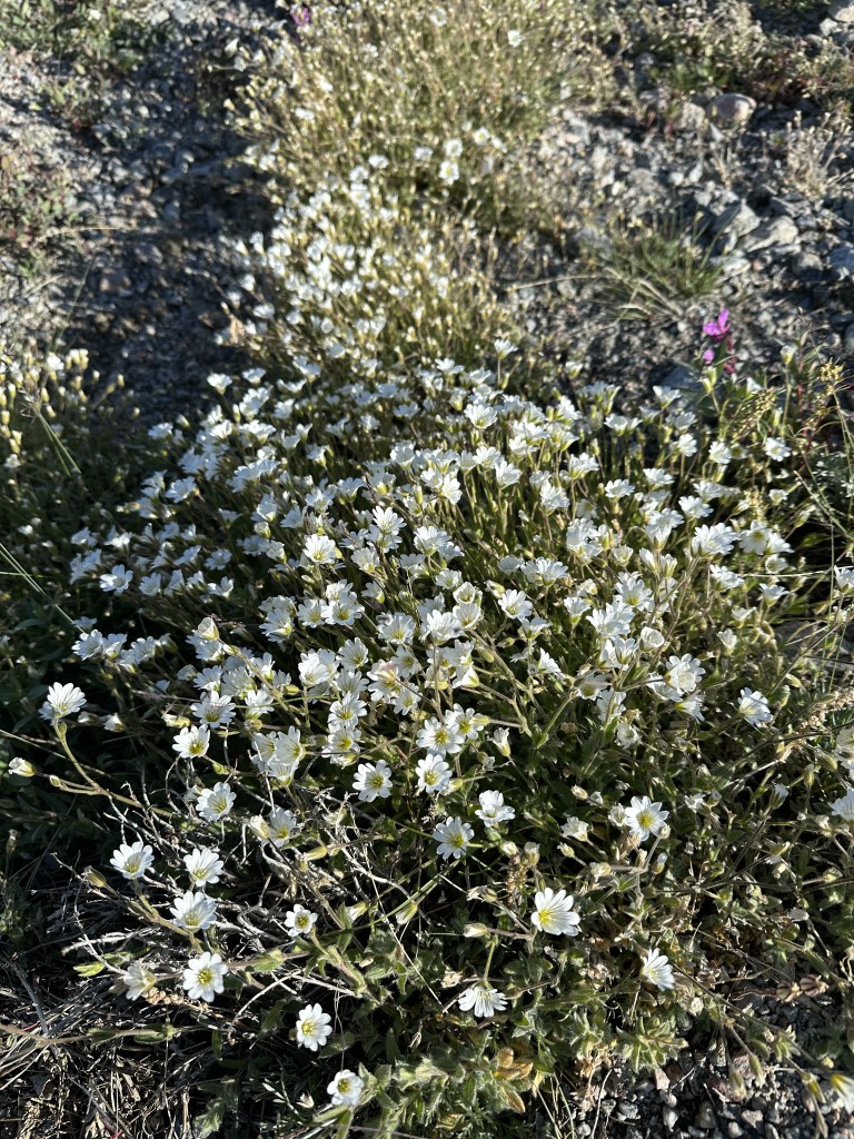 The flowers were so cheerful in the morning sun. It was hard to avoid stepping on them, there were so many.