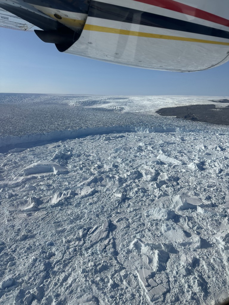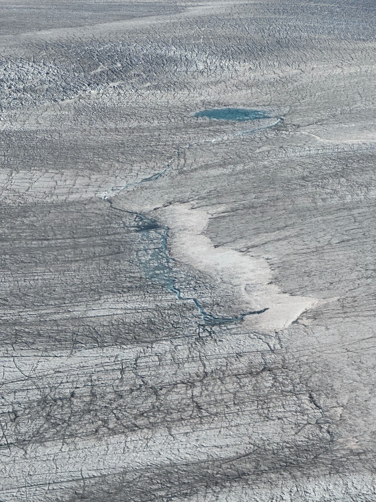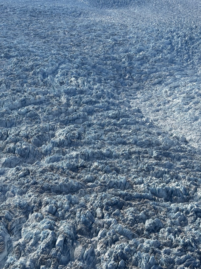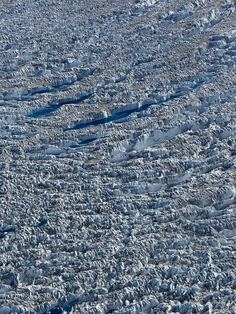 Far from being smooth and featureless from this height, the ice sheet edge was amazing.