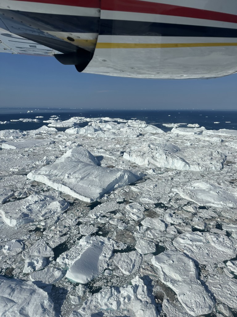 Next morning, now, I didn’t have this in my plan, but it was so nice out again that I couldn’t resist adding one more activity to my time in Ilulissat. A sightseeing flight over some of the lakes, the ice cap, and the spectacular glaciers east of town. On Jonas recommendation I reached out to Air Zafari tours via WhatsApp while I was eating breakfast to see if they had anything I could join this morning. I was in luck, albeit a bit rushed, as they had a group of 4 leaving in an hour that I could join. I still had to finish eating and pack up the room, but I made it work, and it was completely worth it.