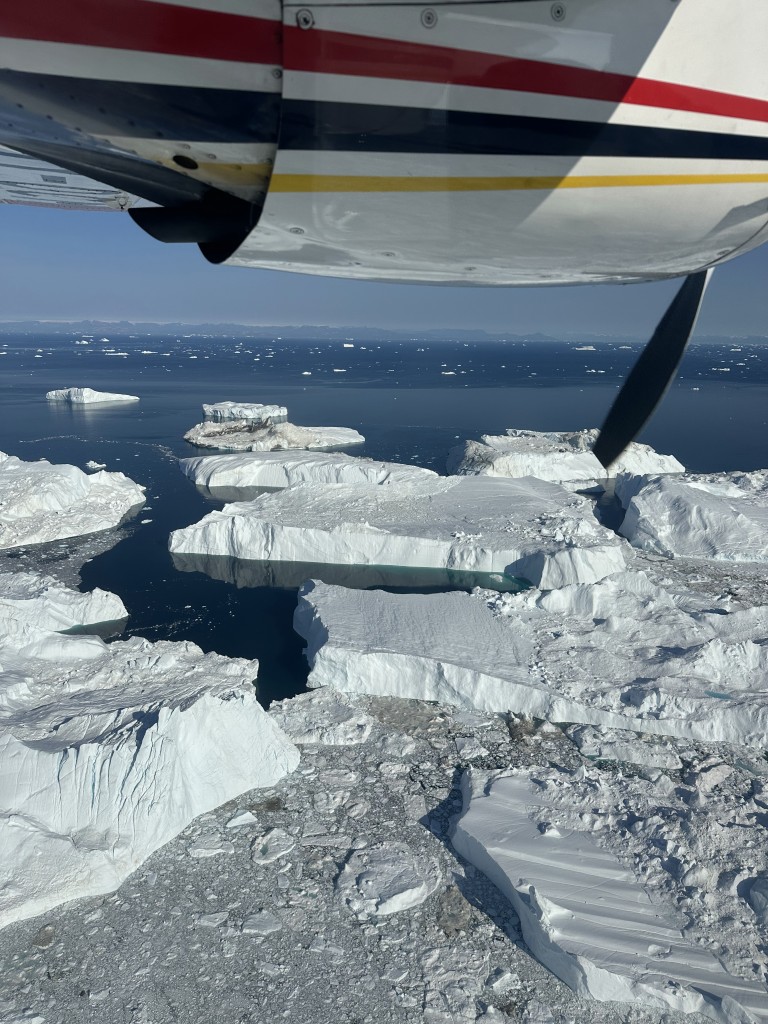 Got a taxi up to the airport and before I knew it I was in the back seat of a Partenavia P68, joining a family from the US on what was also their final morning in Ilulissat. Our pilot was a Danish guy who lived here in the summer, and in Italy in the winter.