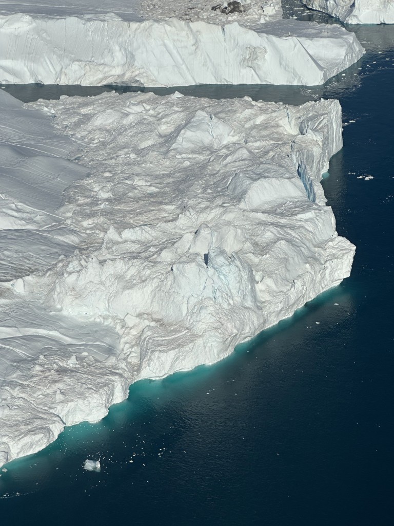 We flew south over to the Southern Glacier, Sermeq Kujalleq, which produces all of those icebergs in the fjord and sea. The glacier front is so productive that you have to look carefully to determine what’s glacier and what’s floating, detached ice.