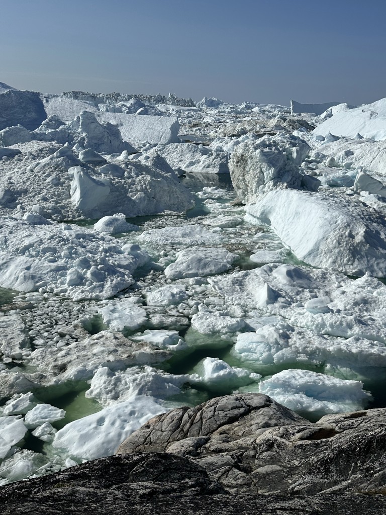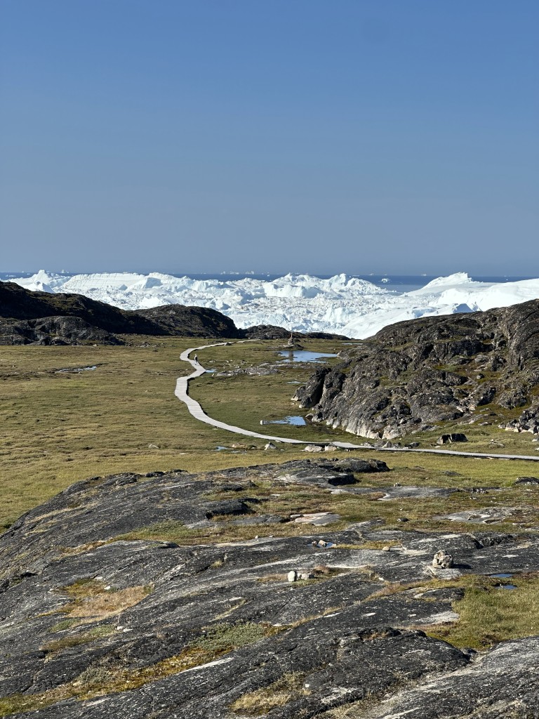 Looking to the west, the Icefjord is filled with icebergs for 70 km before reaching the sea, where we were touring in the boat 2 nights ago. No wonder it’s been a protected UNESCO site for the past 20 years.