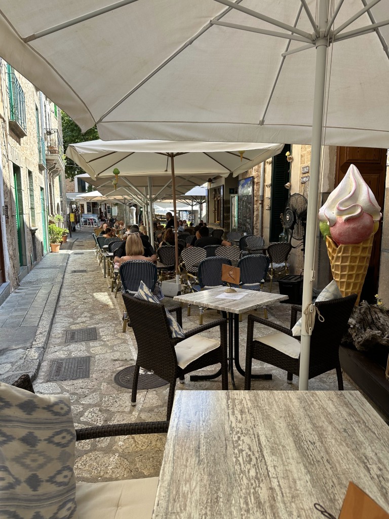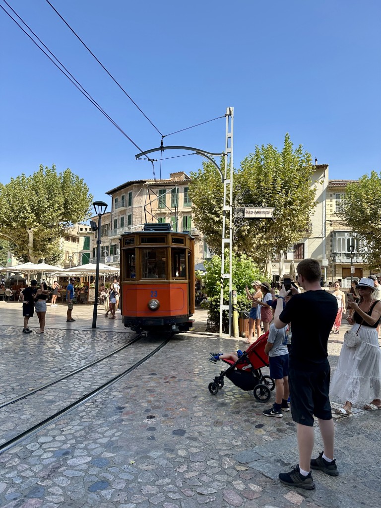 One of the highlights of Sóller is the historical tram from 1913 that goes right through the town square in between tables where people are having brunch and drinks!
