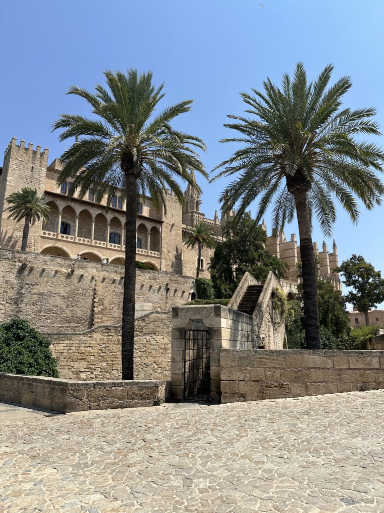 Across the small plaza from the cathedral is Royal Palace of La Almudaina – formerly an Arabian fortress, dating to the 14th century. It is the official residence of the Spanish royal family in Mallorca, and was complete with its own lush garden area.