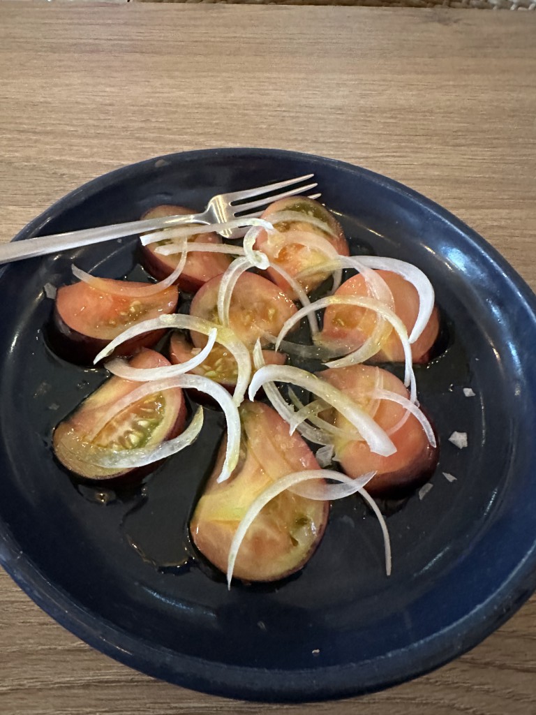 It was hot out (the weather app said 38) and I was literally dripping when I arrived at the main street (which was full of patio tables) after grinding uphill in the late morning sun.