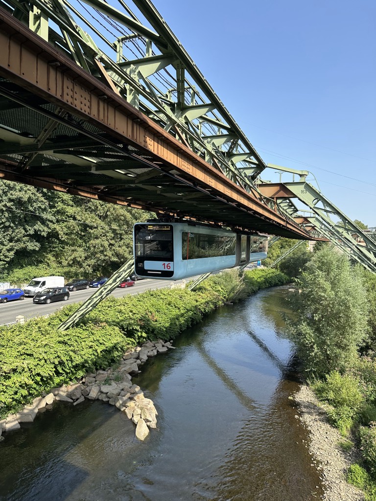 I explored Wuppertal, another city in the Rhine-Ruhr metropolitan region, as I was interested in seeing the “schwebebahn” – a suspended train over the river. It was 39 degrees outside and the river looked inviting, as unfriendly as it likely was.