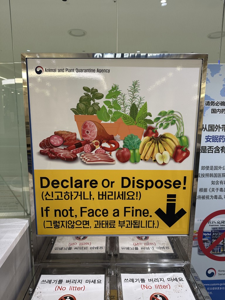 At Korea customs: good thing we left our bags of raw meat dripping with blood at home!
