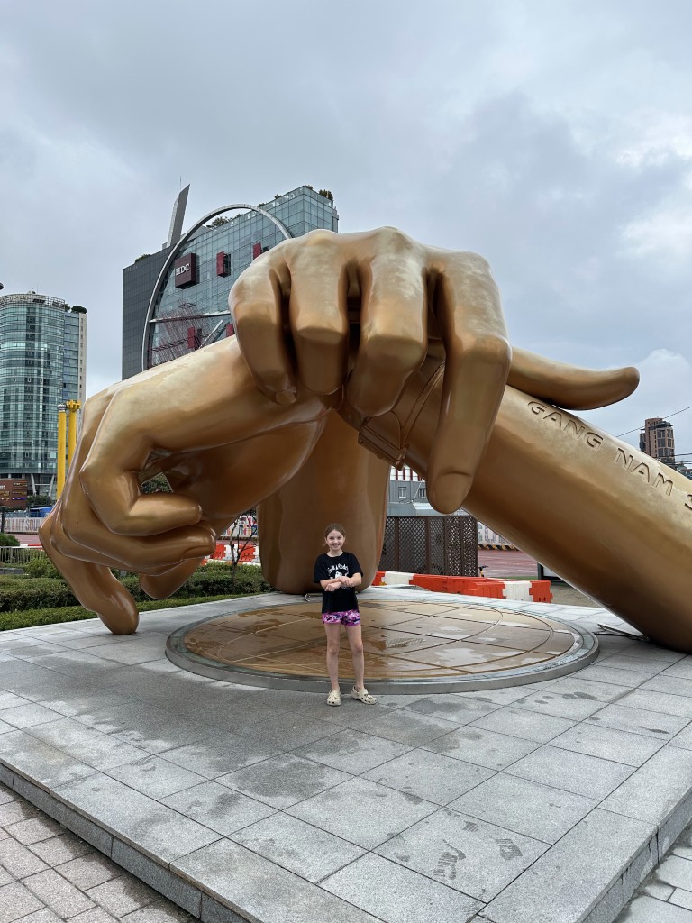 Right outside the mall are the Gangnam Style hands sculpture. The song seemed to be continuously playing on a video screen off to the left for anyone who wasn’t already vibing with the mood.