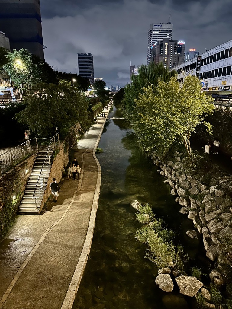 Before heading back to the room, we checked out Cheonggyecheon stream, which was originally a stream, then an open sewer, then a highway, and for the last 20 years back to being a stream and a very pleasant public space.