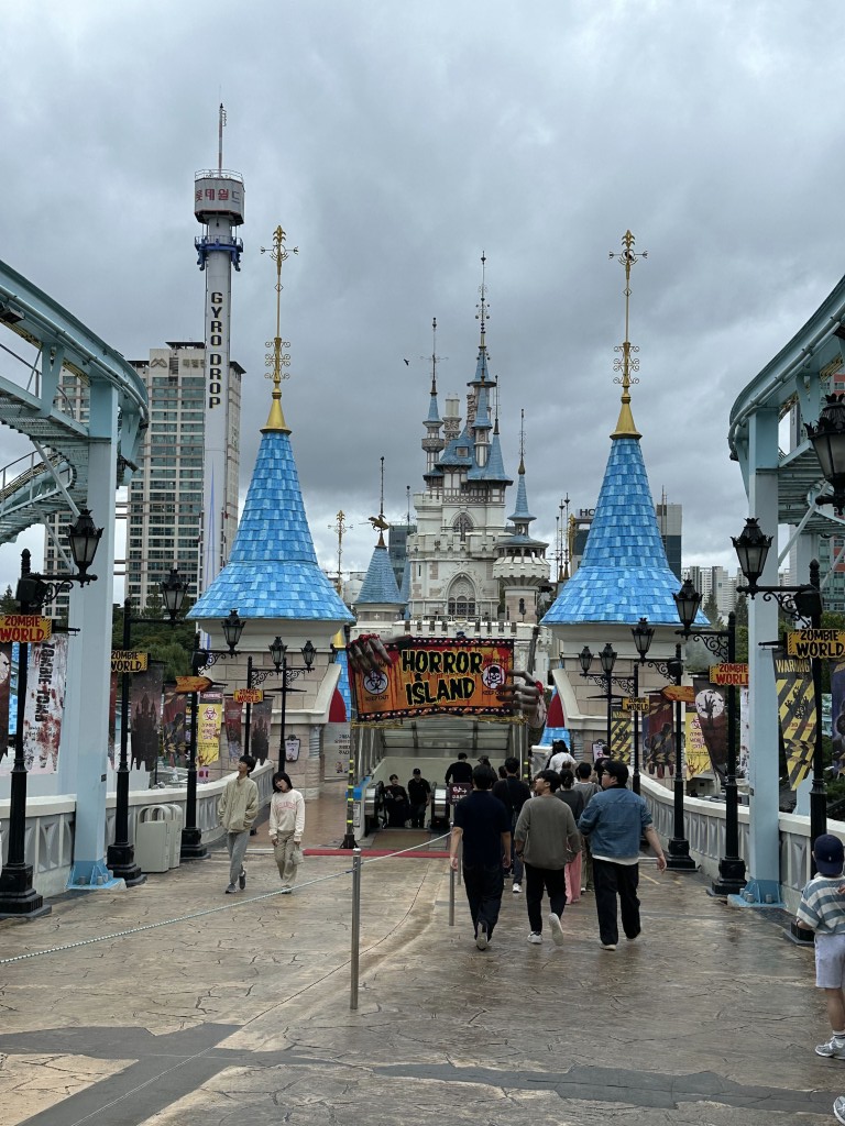 The day had long been forecast to be rain for most of the day, so we planned to visit the (mostly indoor) amusement park Lotte World. Hoping that it would be a bit quieter than usual as today is the Chuseok holiday, like Thanksgiving for Koreans and when most people are supposed to stay home with family for the day.
