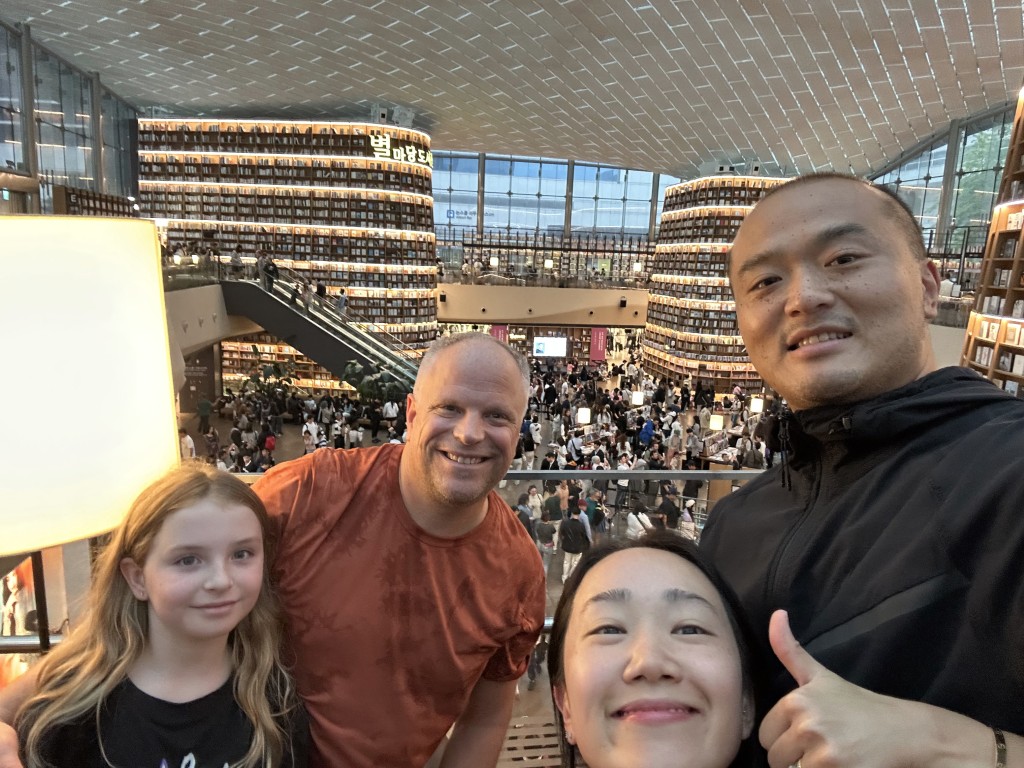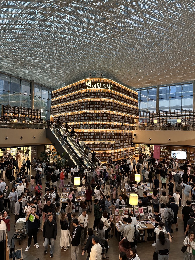 After we were done waiting in lines (our personal limit was an hour) we headed back to the COEX mall to meet up with my colleague Taylor and his wife Moonji, who are Korean and just happened to be visiting family at the same time that we were here. We met them in the very Instagrammable (and cool in person, too) Starfield Library. All of those lighted stacks are bookshelves!