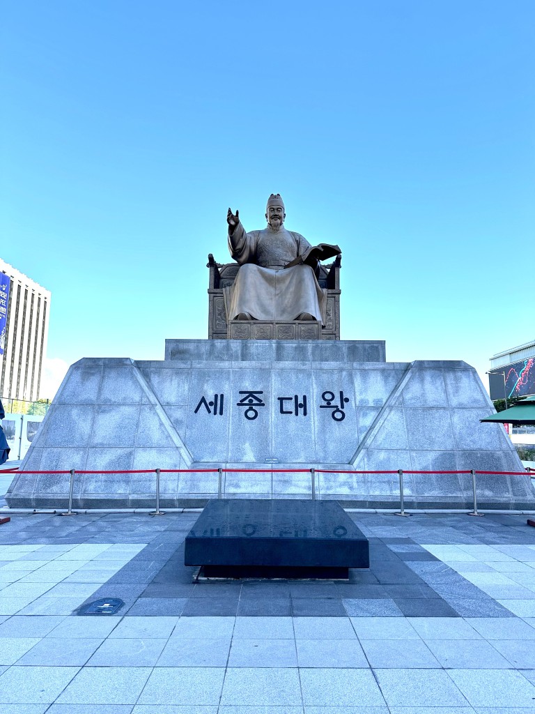 We popped out of the metro at Gwanghwamun Plaza, and encountered the statue of the 1400s era King Sejon the Great.