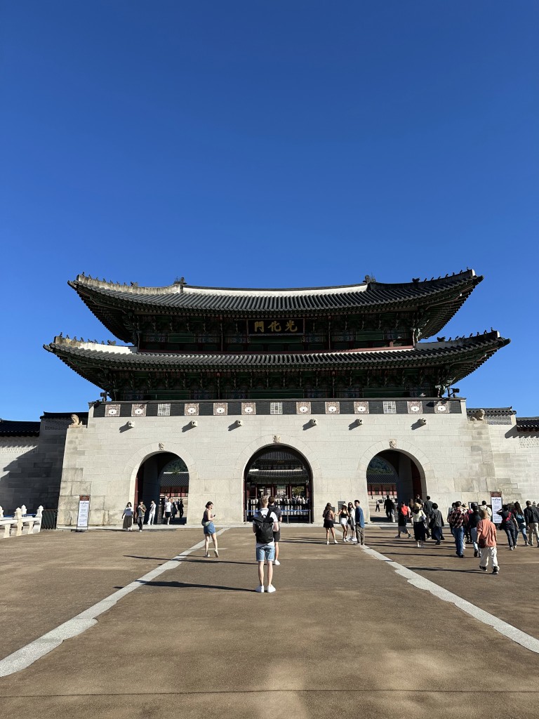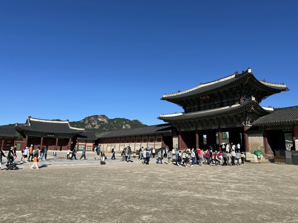 We were at Gyeongbokgung Palace a few minutes before they opened. There was a big lineup to get in (free!) but the crowds dispersed in many directions once inside the gate.