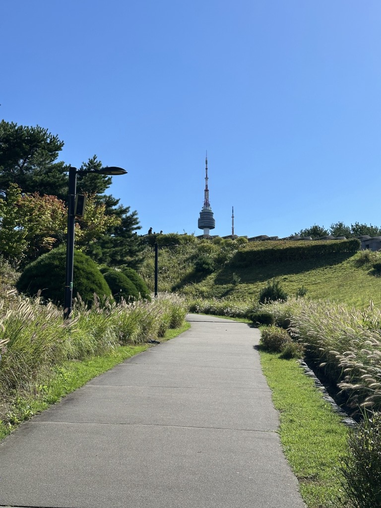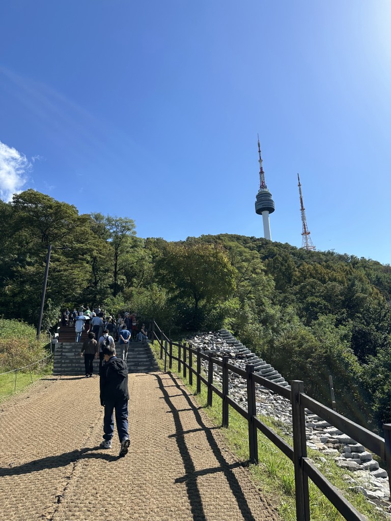 On to our next stop: Namsan, a mountain in the center of Seoul, topped by the N Seoul Tower communications tower/observation deck. There are several ways to ascend Namsan: taxi, bus (there is a public road that goes about 80% of the way up), cable car, or walking. We took one of the most popular walking/hiking routes which begins at Namsan Baekbeom Square park on the northwest side of the mountain.
