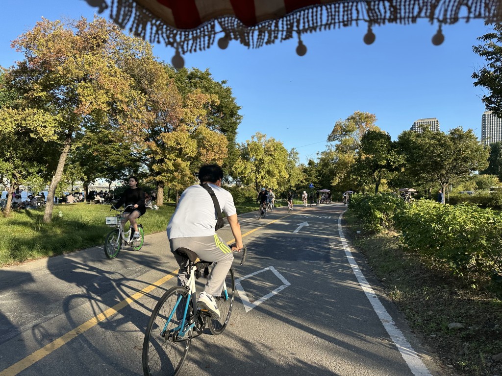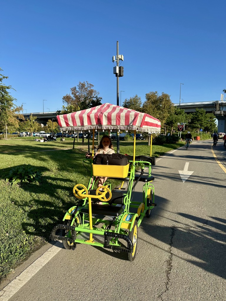 Since it was so nice out we headed to Yeouido Hangang Park, on the south side of the Han River, where Ellie was very excited to rent a four wheeler bike.