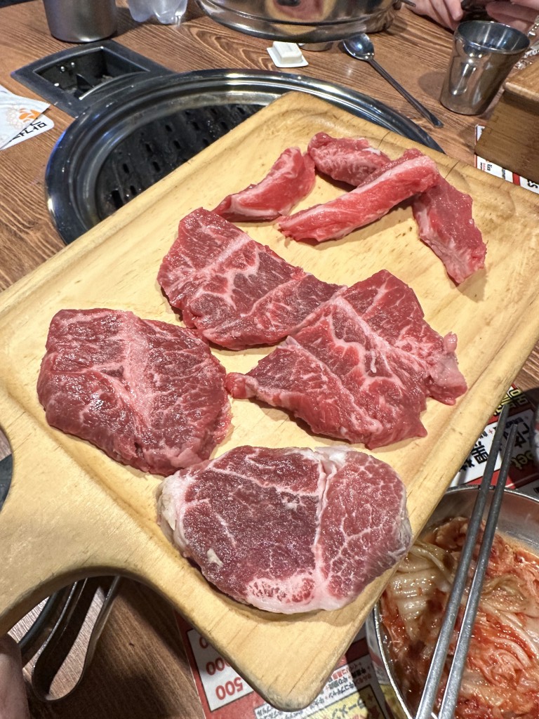 The next time we ventured out of the room was at dinner time for the first of several Korean BBQ places on a street around the corner lined with cafes and restaurants.
