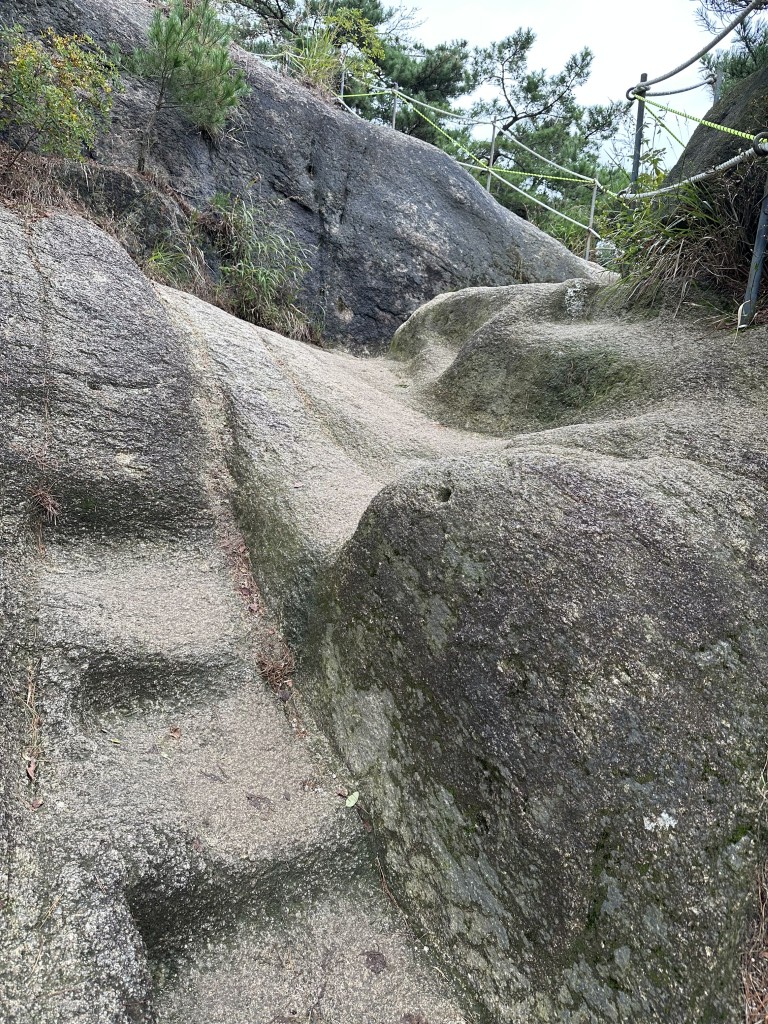 The trail was varying stages of dirt, rock steps, steel and composite stairways, boardwalks, and steps hewn directly into the rock.